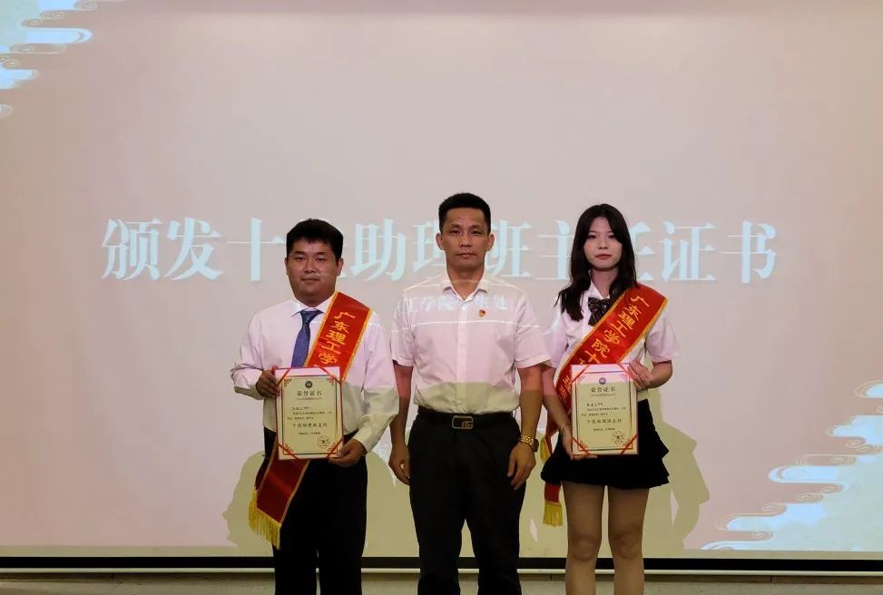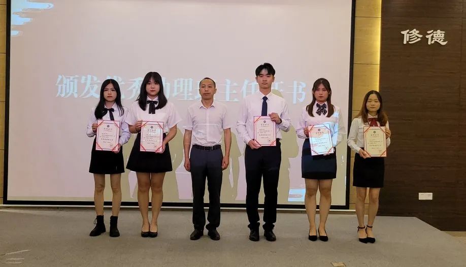 员工处处长谭蒙革为优秀助理班主任颁发证书