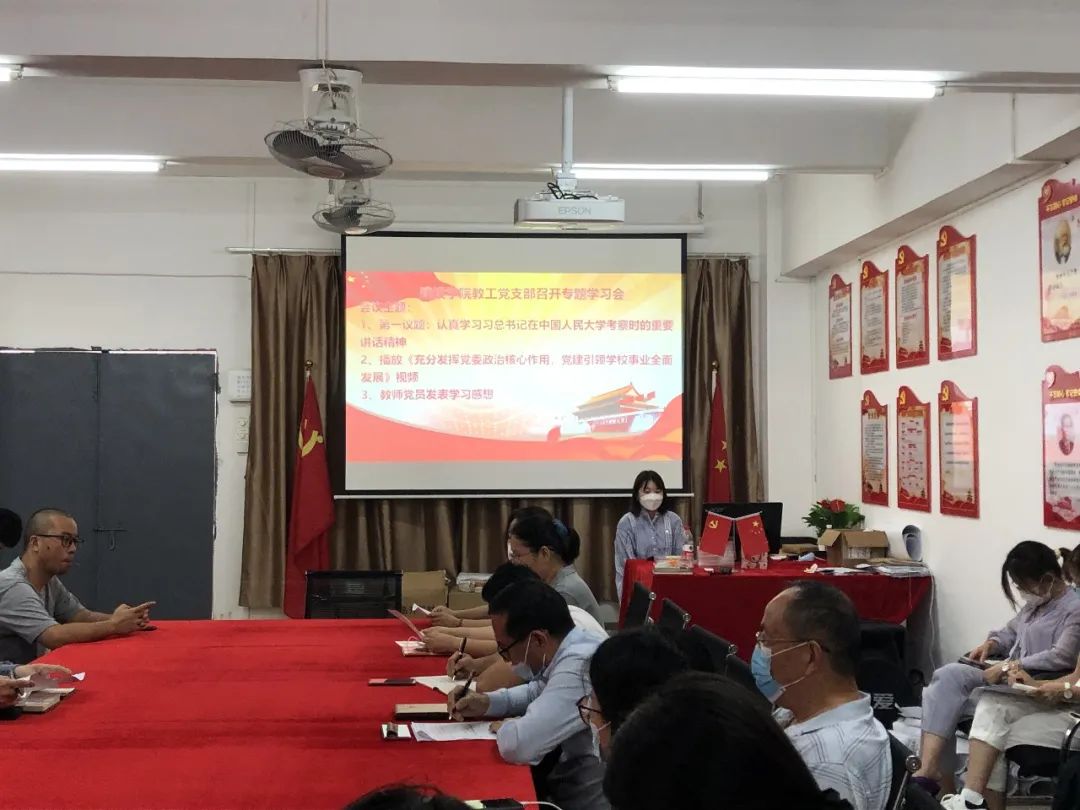 5月10日下午,公司教工党支部在3210召开专题学习会,认真学习贯彻习近平总书记在考察中国人民大学时的重要讲话精神。