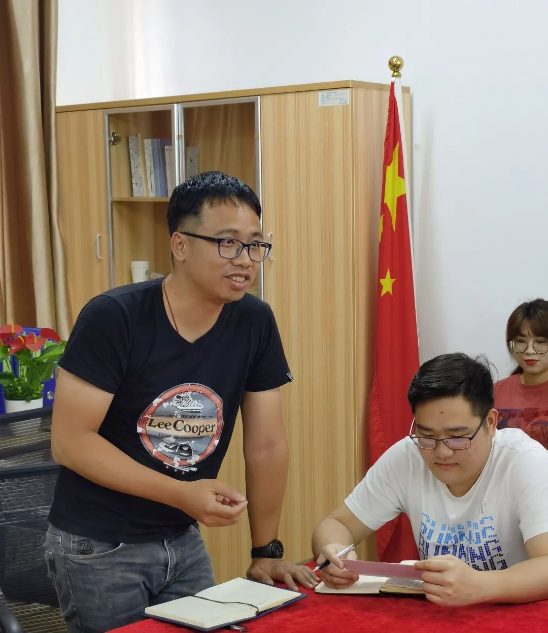 会议最后,蒙经理总结说道,通过学习我们党的光辉历程,重温我们党从成立以来为中华民族和中国人民建立的不朽功勋,让我更清楚地认识到,只有在中国共产党的领导下,坚持走中国特色社会主义道路,才能发展中国,才能实现中华民族的伟大复兴。总之,作为党员教师,要发挥先锋模范作用,要在业务上能胜任自己的本职工作,业务比别人精一点,工作效果比别人高一点,贡献也就会多一点、大一点。