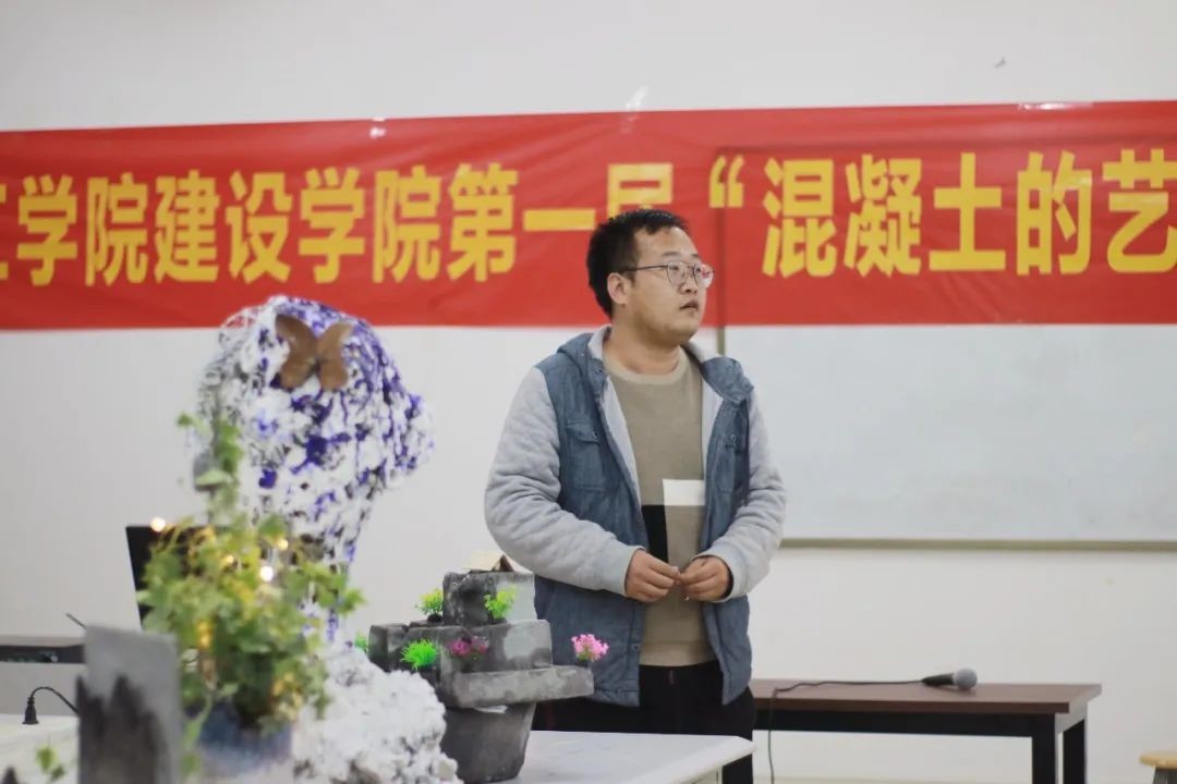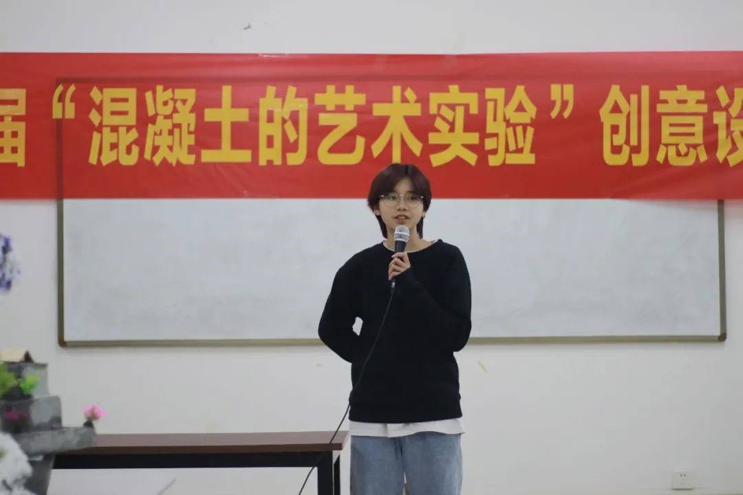 王金歌老师对参赛作品的混凝土调制配合比、作品设计等专业性问题进行现场举例说明,呼吁大家加强相关专业知识学习,创造更多经得起推敲的优秀作品。