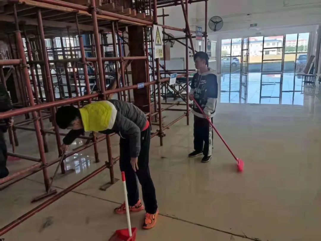 在同学们的共同努力下,教学楼逐渐变得宽敞明亮、焕然一新,同学们的劳动能力也得到了锻炼与提升,不仅创造了一个更加干净舒适的学习和生活环境,更是以是一个新面貌、新气象来喜迎元旦。