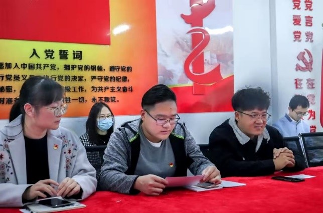 吴晓锐同志、刘春杨同志、洪玮同志、陈旭夫同志、缑伟涛同志在会上依次向党组织就自己的思想、工作、学习等多方面进行汇报,并正式向党组织提出按期转为预备党员的申请。