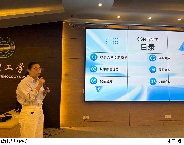 欧晴洁老师则聚焦AI数字人赋能视频教学,详解从脚本生成、画面素材获取到配音合成、动画剪辑的全流程操作,分享豆包、剪映等工具的应用技巧,有效解决教师视频制作耗时等问题,提升教学资源更新效率。