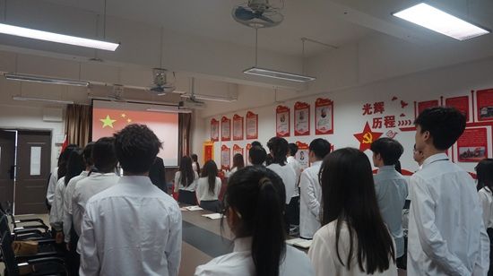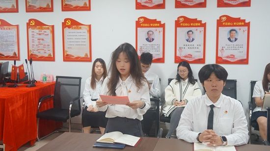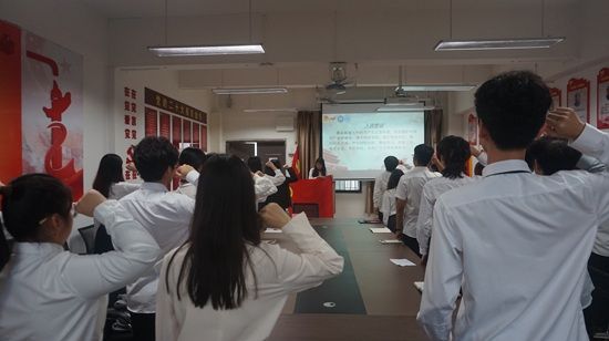 上一届“青马工程”培训班优秀学员代表皇甫筱雅同学领誓,全体学员起立,重温入团誓词。