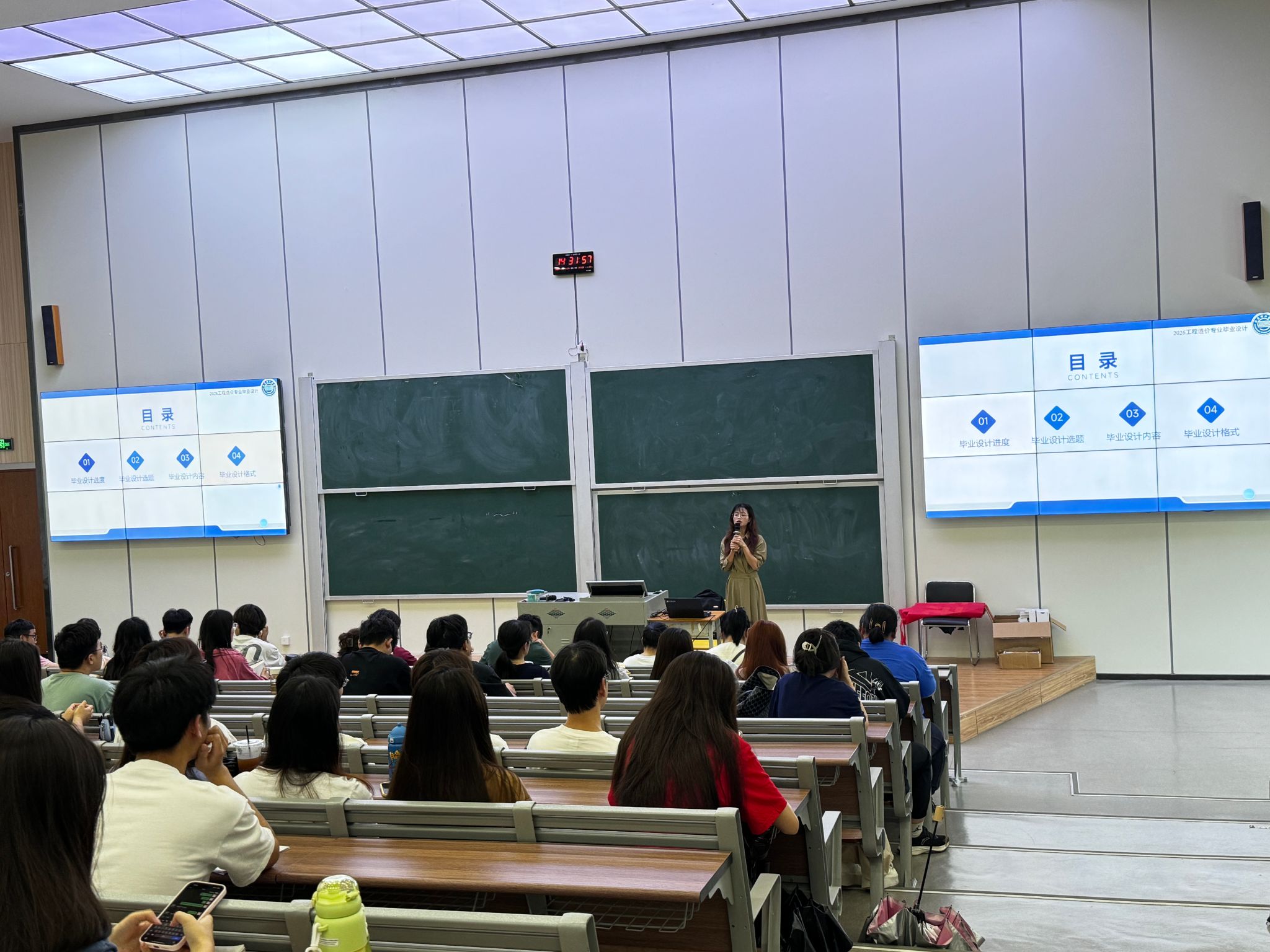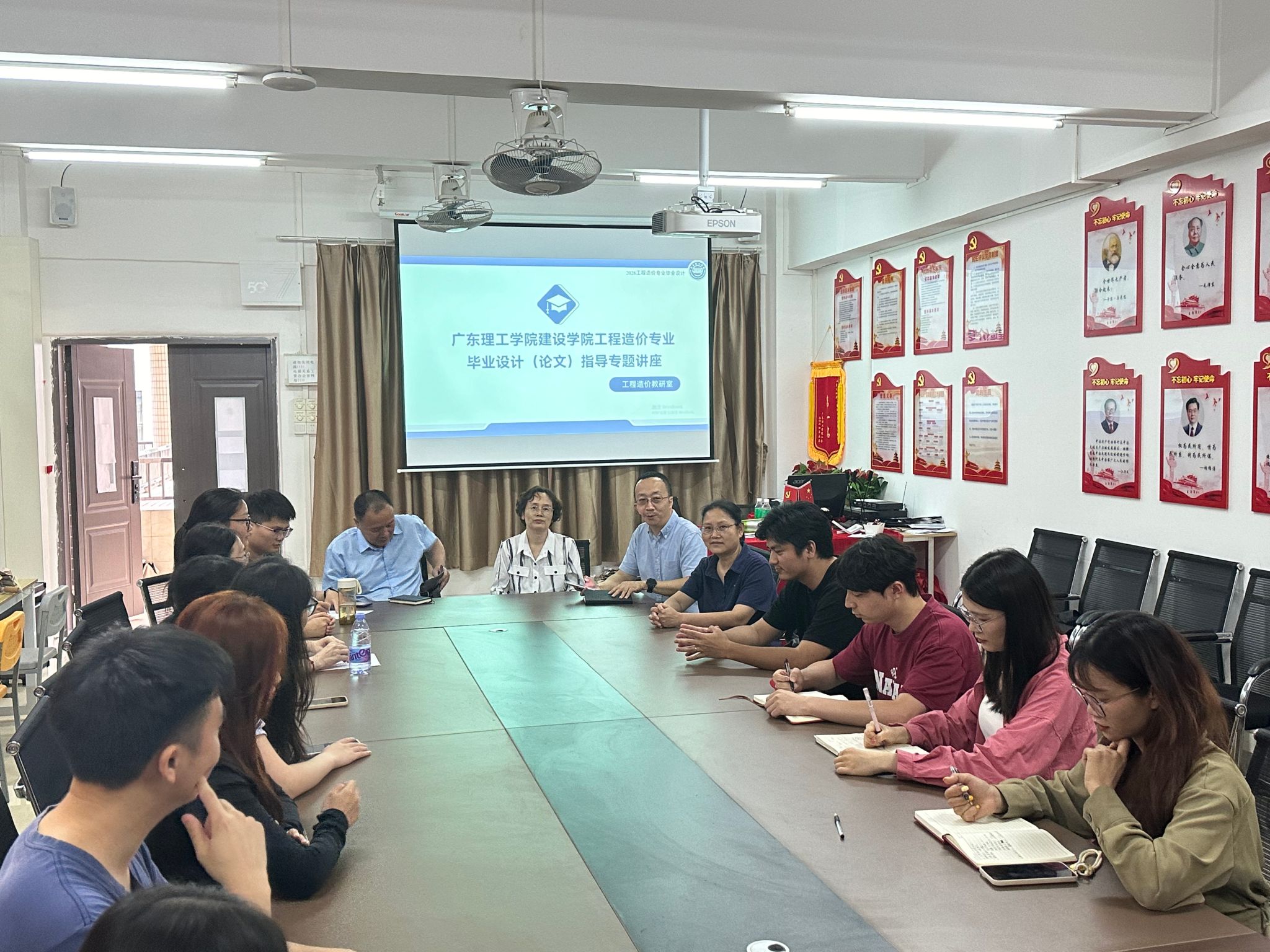 活动伊始,教研室全体教师召开内部工作会议,会议由工程造价教研室主任吴建成主持,会议系统梳理了往届毕业设计中的共性问题和典型案例,进一步明确指导教师责任清单与阶段性任务节点。随后,教研室在6栋桃李厅举行专题讲座,工程造价专业全体教师及2026届员工参会。讲座由覃雪婷老师主讲,围绕毕业设计的进度规划、选题标准、内容架构及格式规范四个方面展开详细讲解。会议强调,员工必须独立完成毕业设计,严禁代写、抄袭等学术不端行为,选题严格执行“一人一题”原则,确保成果符合公司规范要求,违者将按相关规定严肃处理。在讲座过程中,员工认真听讲并积极互动,针对毕业设计选题方向进行积极的交流探讨,最后工程造价全体教师寄语员工在后续企业综合实习中提升专业素养,高质量完成毕业设计任务。