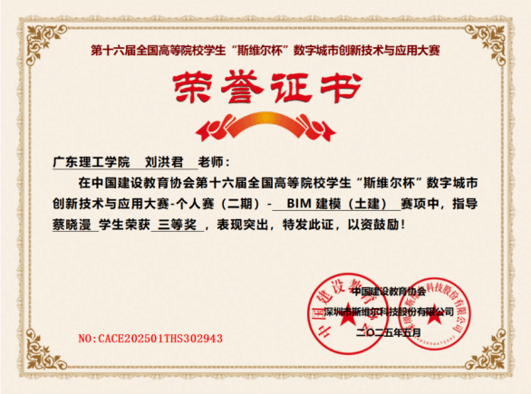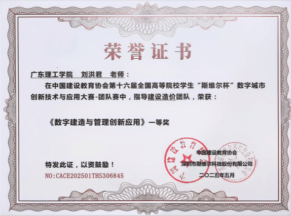 在带队教师的辛勤指导下,工程造价专业的同学也在全国各种数字造价类的专业比赛中取得了非常好的成绩,其中就有:全国数字建筑创新应用大赛、全国高等院校员工“斯维尔杯”数字城市创新技术与应用大赛、国际高校BIM毕业设计创新大赛等。